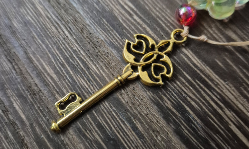 I found the key but I don't understand what to do with all these beads.You should take a closer look at the letters tied onto the strings, and the other books on the shelf. Don't forget to look closely at the bookmark itself too. I don't get the bookmark. Isn't it just soup?Look closer at the image. Have you seen this elsewhere in the library, and is this somewhat different...? SolutionThe letters on the strings say "Whisk" and "W??D?R". There is a game book on the shelf titled "Whisk & Wonder". Fill in the blanks to form the word "ONE". The pot on the bookmark has some letters replaced by numbers. When you find the missing letters and put them in the right order, it reads "HEART". |